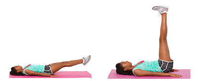 Ляжте на спину і одночасно повільно підніміть обидві ноги, поки вони не досягнуть кута 90 градусів по відношенню до підлоги. Якщо вам це важко або ви відчуваєте напругу в попереку, трохи зігніть ноги в колінах, не змінюючи вигину в попереку. З крайнього верхнього положення почніть повільно опускатися вниз. Зробіть 10-15 повторень. Щоб отримати велике навантаження, вправу можна робити, трохи піднявши ноги над землею.