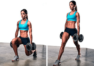 Для максимальної ефективності та підтяжки стегон присідання та інші вправи також можуть містити випади з гантелями.