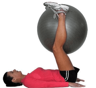 Якщо ви хочете мати красиві стегна, вправи з фітболом, як це, може бути дуже корисним. Ляжте на спину та підніміть ноги вертикально вгору. Помістіть фітбол між обома ногами та стисніть, щоб зафіксувати його на місці. Упріться руками в підлогу для опори, а стегнами повільно стискайте і відпускайте м’яч, але не гублячи його. Ви робите 3 підходи до 15 повторень.