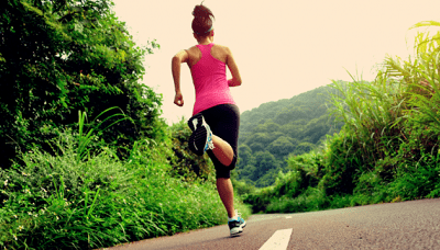 Однією з найпопулярніших вправ підтримки форми є біг. Оскільки це одна з найприродніших вправ для тіла, біг крім спалювання жиру також сприяє зміцненню кісток та сухожилля. Якщо спочатку не витримуєте тривалий біг, добре розділити тренування на інтервали по 10-15 хвилин, між якими є 5-хвилинні перерви. Біг спалює від 7 до 10 ккал за хвилину.