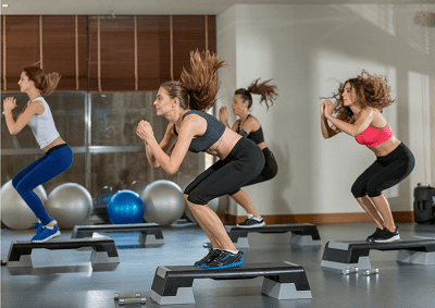 Люди, які не люблять однакові високоінтенсивні вправи, часто зупиняються на різних заняттях аеробікою. Степ-аеробіка – один з оптимальних варіантів аеробних тренувань, що включає різноманітні вправи з різною інтенсивністю, що значно навантажують нижню частину тіла. Аеробіка спалює від 5 до 7 ккал на хвилину, а оптимального спалювання жиру вона повинна становити щонайменше 30 хвилин.